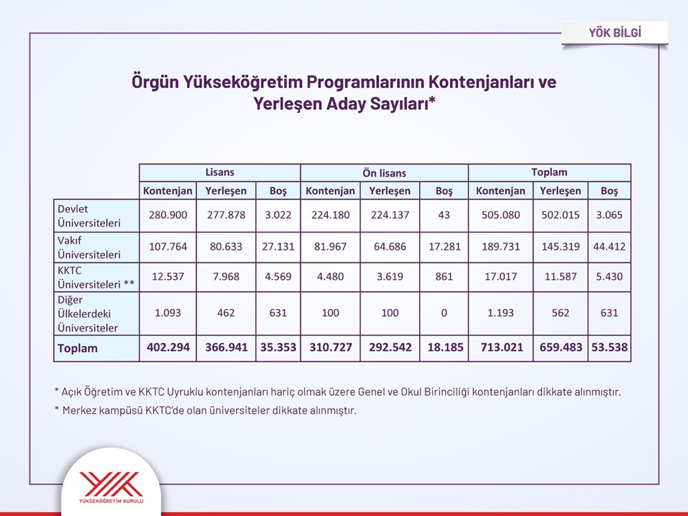 In his assessment of the results, Erol Özvar, President of the Higher Education Council, stated that the demand for access to higher education continues to be extremely strong, adding, “We are pleased to see that the policies we have pursued in recent years to respond effectively and inclusively to this demand have yielded positive results.”