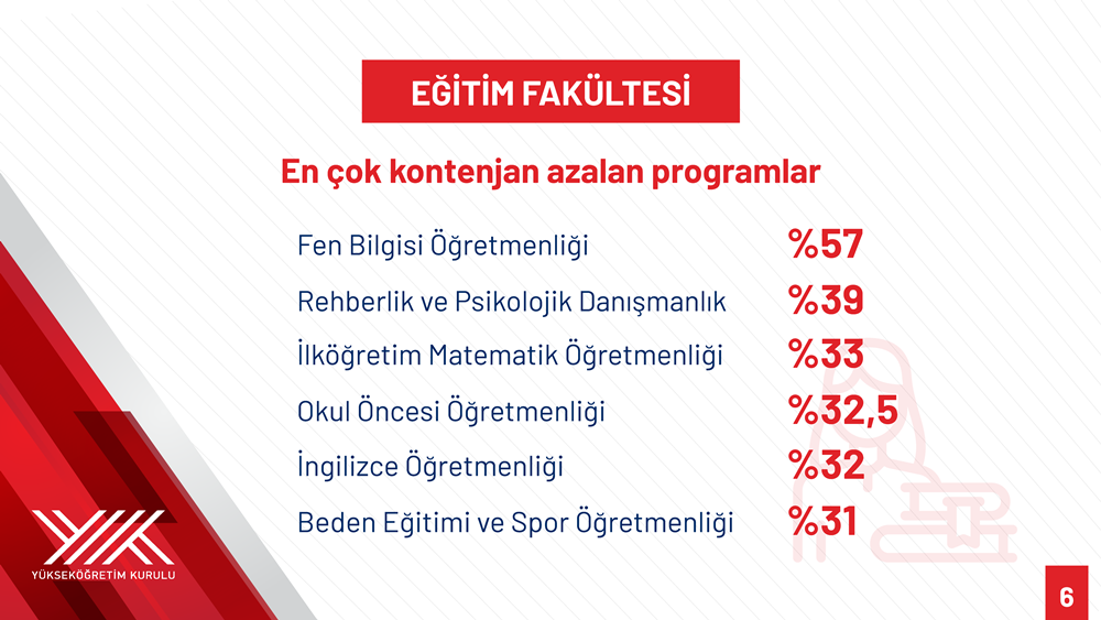 Özvar stated that during the same period quotas were reduced by 33 percent in Elementary Mathematics Teaching (from 4,018 to 2,698), 32 percent in English Teaching (from 5,060 to 3,437), 31 percent in Physical Education and Sports Teaching (from 3,697 to 2,560), 32.5 percent in Preschool Teaching (from 5,152 to 3,476), and 39 percent in Guidance and Psychological Counseling (from 5,741 to 3,498). He added that a minimum age requirement of 35 was introduced for enrollment as a “second university” in open education undergraduate programs such as Child Development, Philosophy, Sociology, History, and Turkish Language and Literature, which also serve as pathways to teaching. “In determining quotas both for education faculty programs and other programs feeding into the teaching profession, teacher workforce planning by the Ministry of National Education in both the public and private sectors was taken into consideration,” he said.