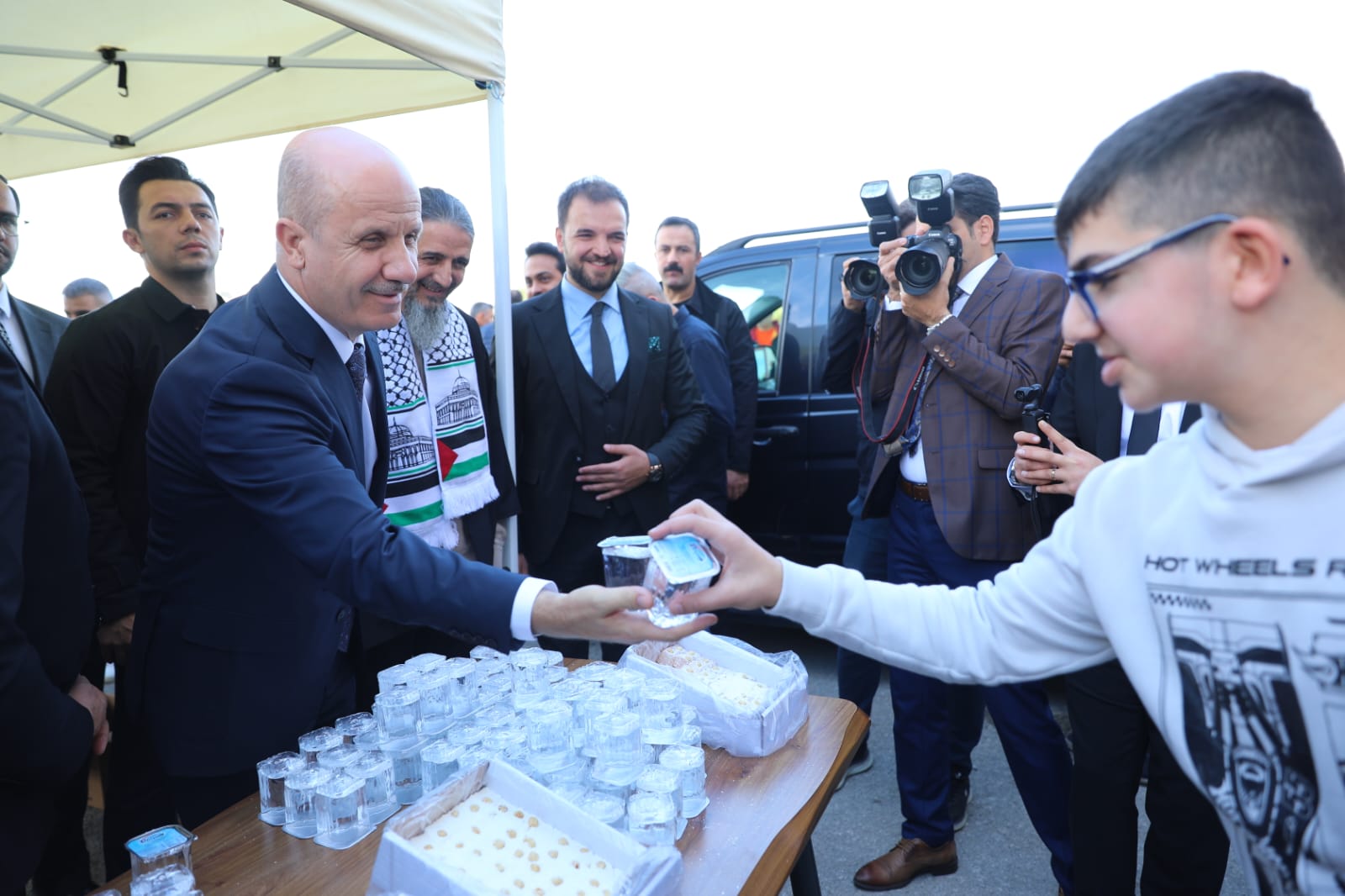 After visiting the Mobile Animal Hospital and the University Products Exhibition, Özvar attended the solidarity event “A Sip of Water for Gaza and Its Martyrs.”