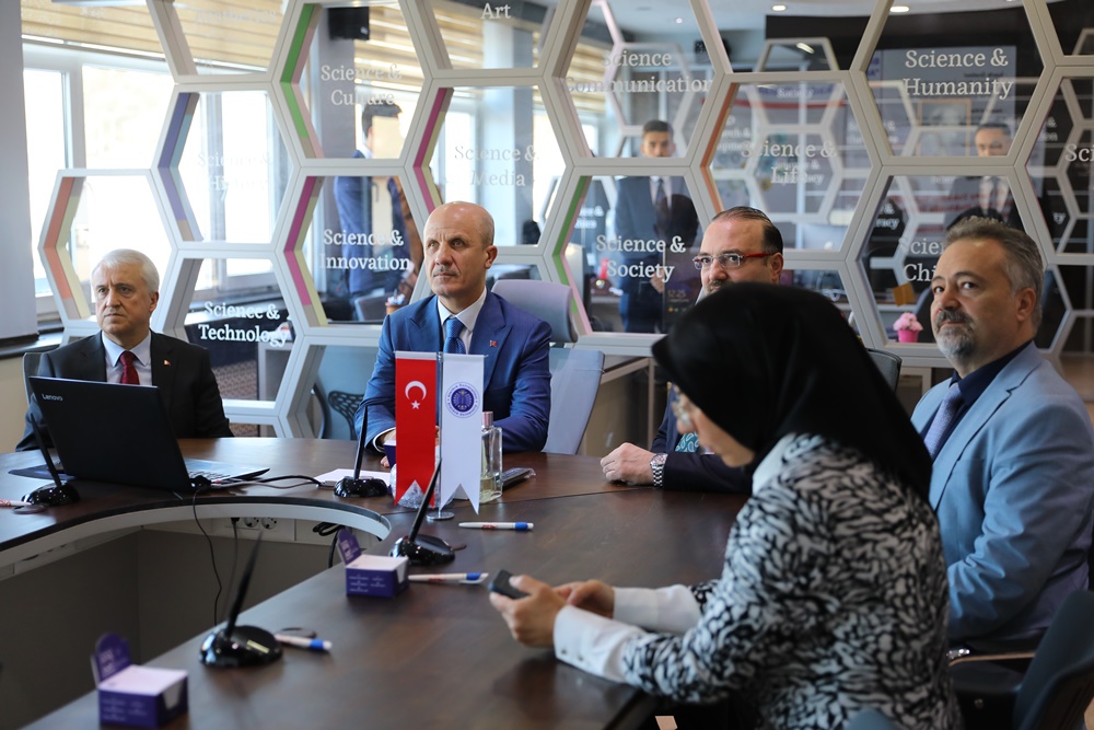 Özvar visited the newly established Science Communication Office at the university and wished them success. Then he congratulated the university officials for the opening of the Science Communication Office in a short time.