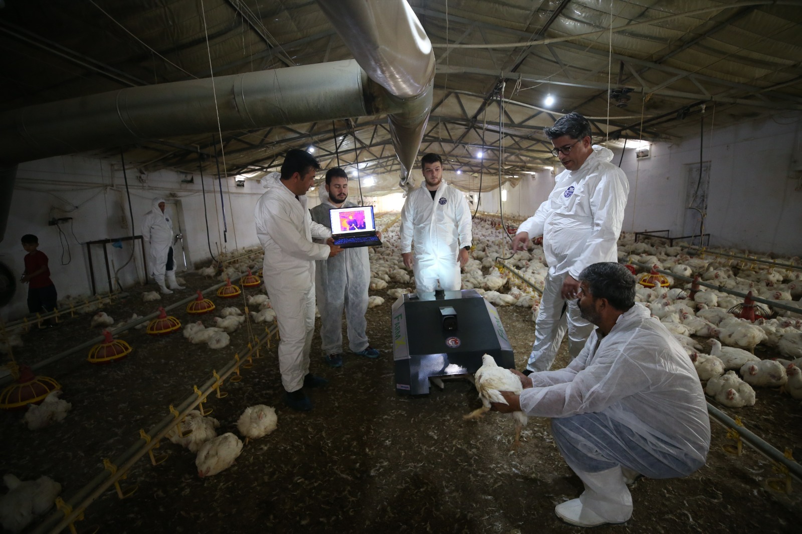 Academics continue to work on the functioning of "BroBot" at the chicken production farms in Dümrek village. ÇOMÜ Rector Prof. Cüneyt Erenoğlu stated that they identified the needs of farmers and created projects with the Science Communication program and emphasized that the system enables the removal of sick or dead animals from the poultry house environment within minutes without the need for any human intervention. In this way, he noted that mass deaths will be prevented and an important contribution will be made to the national economy.