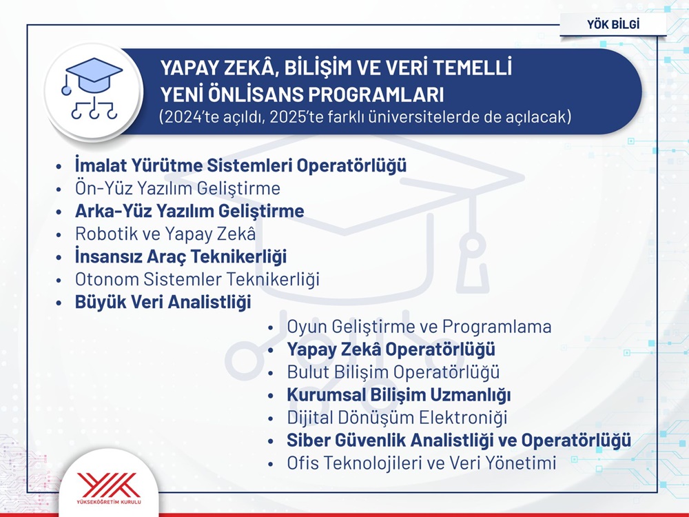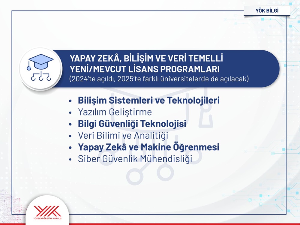 New programs are being implemented to meet Türkiye's human resources needs in the fields of digital transformation, AI, information technologies, digitalization in agriculture and health, and green transformation. Introduced in 2024, more AI-based programs will be opened in 2025.