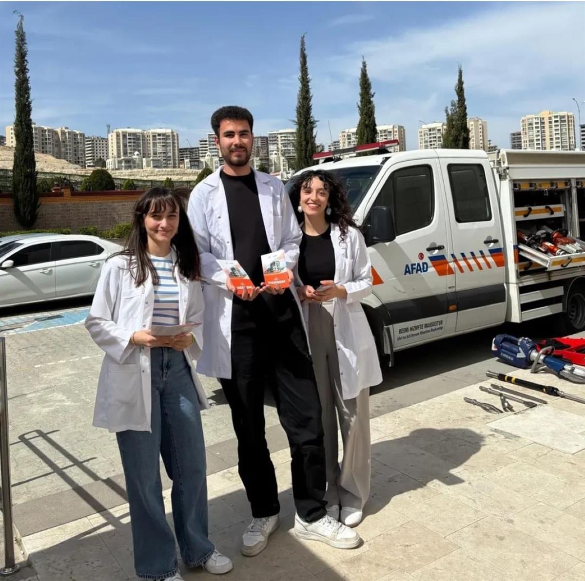 At Gaziantep Islamic Science and Technology University, field activities titled “Earthquake Awareness and Its Psychological Dimension” were organized in many provinces under the leadership of the National Public Health Team. With the participation of AFAD volunteers, information was provided on what should be done before, during, and after an earthquake; informative brochures were distributed; and the tools and equipment used in debris areas were introduced and experienced through hands-on demonstrations.