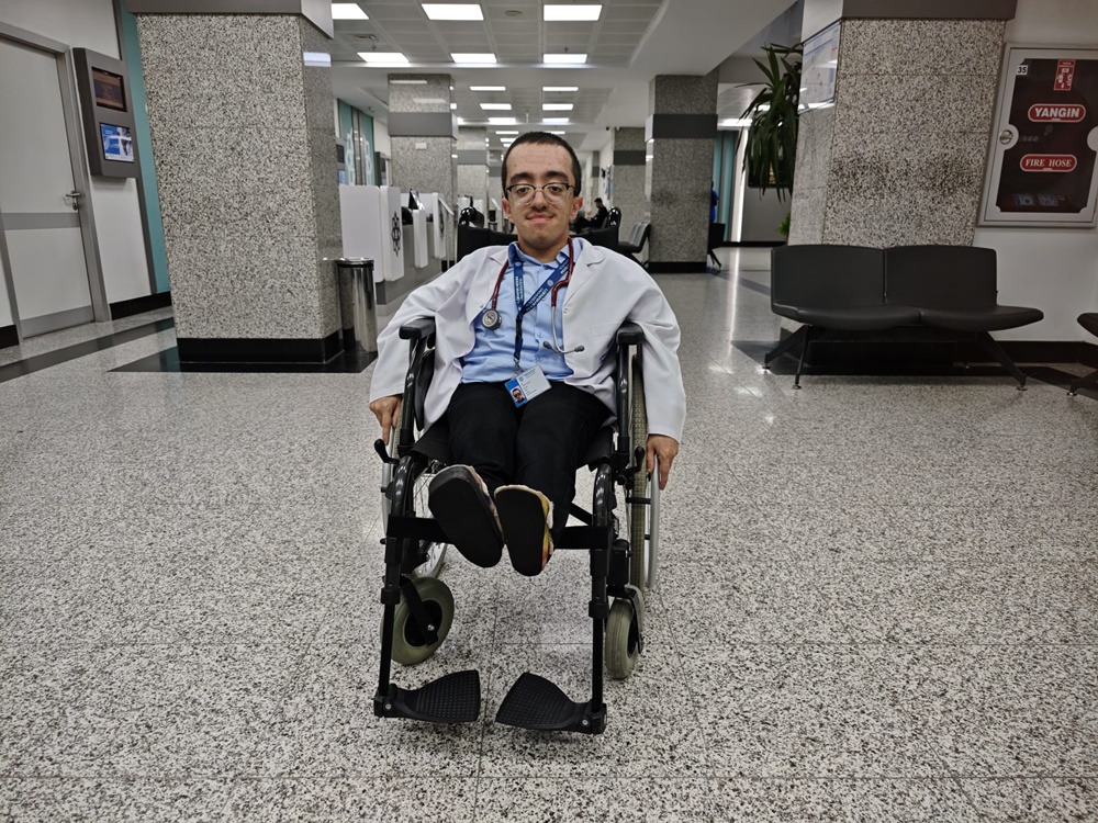 Hamza Mesut Ağır, a 24-year-old final-year medical intern living with Osteogenesis Imperfecta (brittle bone disease), has turned his childhood dream of becoming a doctor—born in the hospital corridors where he spent much of his early life—into reality. The challenges he has overcome while using a wheelchair have shaped him into a future physician now preparing to provide care and healing to patients.