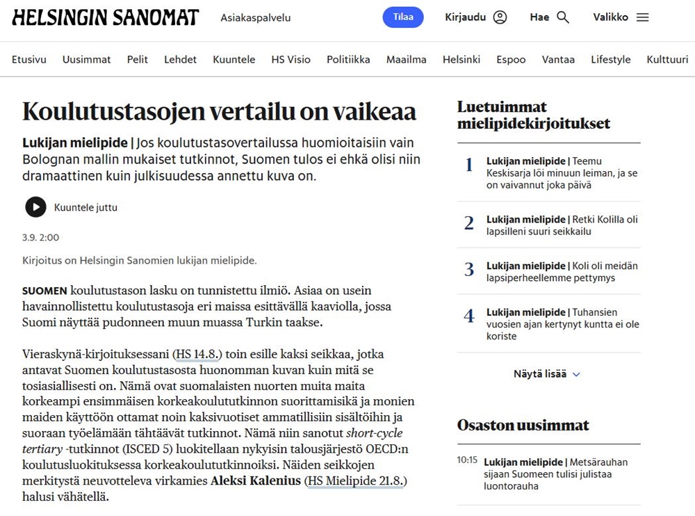 Türkiye's success in higher education in recent years has been featured in the Finnish press, with praise for Turkish higher education for enabling young Turkish people to enter the workforce at an early age.