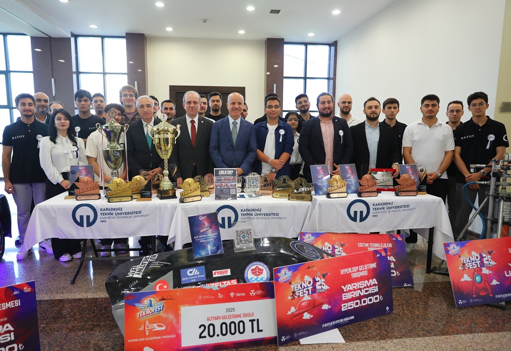 Later, he met with KTU students, including those who received awards at TEKNOFEST, discussing their projects and achievements. The program was attended by Trabzon Governor Aziz Yıldırım, regional university rectors, academics, students, and guests.