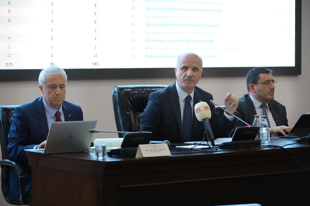 “Yükseköğretimde Mesleki Eğitimin Yaygınlaştırılması” toplantısı Yükseköğretim Kurulunda gerçekleştirildi. Toplantıya Yükseköğretim Kurulu Başkanı Erol Özvar ve Yürütme Kurulu Üyeleri ile mesleki eğitimde dönüşümün başlatılacağı 7 pilot ildeki (Konya, Gaziantep, İstanbul, Bursa, Kocaeli, İzmir ve Ankara) 85 üniversitenin rektör, rektör yardımcıları ve meslek yüksekokullarının (MYO) müdürleri katıldı.