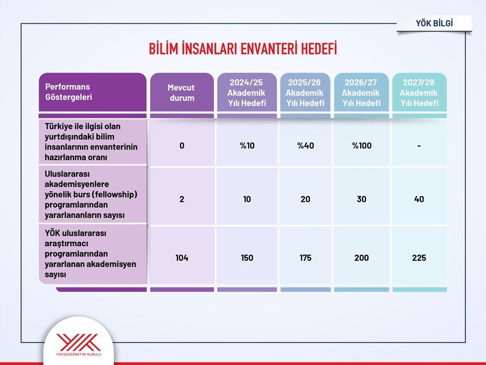 Toplam öğretim elemanları içindeki payı yüzde 1.57 olan uluslararası öğretim elemanı oranının yüzde 5’e yükseltilmesi hedefleniyor.