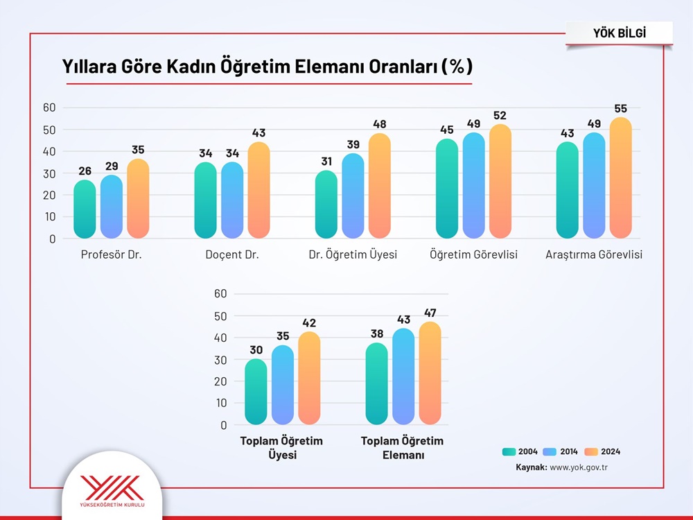 - Akademideki kadınların oranı yüzde 47 ile en yüksek seviyeye ulaştı